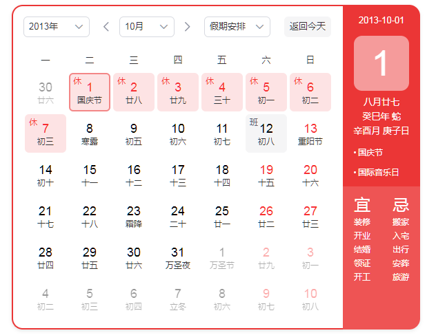 10月1日至7日放假調(diào)休,共7天。9月29日(星期日)、10月12日(星期六)上班。