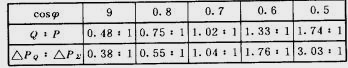 得知當電網結構固定,輸送的有功功率一定時ΔP∑的大小取決于Q的變化,即與Q的平方成正比。下面的表格表示了不同負荷功率因數下,電網需要輸送的Q造成ΔP∑的變化。