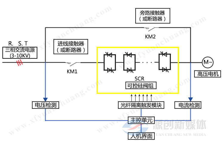 高壓固態(tài)軟起動器又稱中高壓固態(tài)軟起動器(Medium、High-voltage solid-state soft starter),是一種新型的中高壓電機起動器,主要適用于10KV以下的中高壓交電動機,采用先進DSP控制技術、電力電子技術及它的主要構成是串接于電源與被控電機之間的三相反并聯(lián)閘管及其電子控制電路。運用不同的方法,控制三相反并聯(lián)閘管的導通角,使被控電機的輸入電壓按不同的要求而變化,就可實現(xiàn)不同的功能。